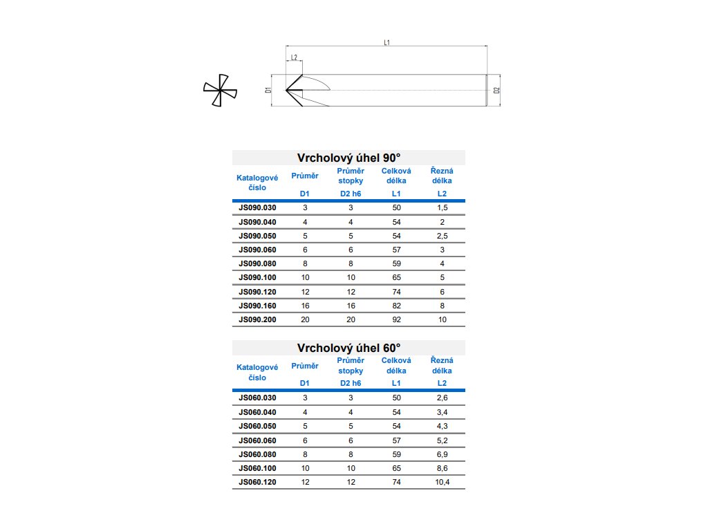 Průměr nástroje: ⌀ 4 mm, Vrcholový úhel: Vrcholový úhel - 60°